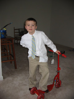 While I was getting dressed, T Jay comes upstairs and tells me that they are,"having a little bit of trouble." I asked him with what and he told me that they needed help putting the tent up. I suspiciously asked him if he brought in the blue tent (huge) or the brown tent (not huge). When he told me that they had indeed brought the blue tent in I was slightly confused. Several questions went through my mind. Number 1: How did the two of them lift something that is at least T Jay's body weight, if not more? Number two: How did they get it off of the storage shelf in the garage that it was wedged onto? and Number three: How did they get it past my car ? I pulled in too far today and had trouble getting past with out a tent. (stop laughing, Kenny!) "What's gonna work? Team Work!" Amazing feats of pre-schoolers! The above picture is what I came down to! I folded up the eight man tent and re-stowed it on the shelf and pulled out the 4 man tent.